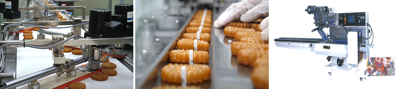 최종 배출 컨베이어를 통해 포장라인으로 자동 이송된 제품은 정확한 포장이 가능한 삼면포장기로 최종 포장까지 완료 됩니다.
