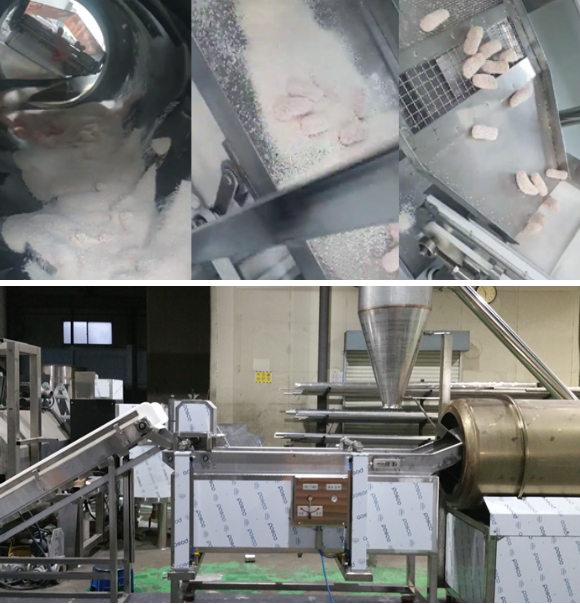 튀겨진 유과에 시럽을 묻히고 자동으로 배출되어 쌀가루 혹은 특유의 시즈닝까지 입혀주는 역할을 수행하는 설비입니다.
