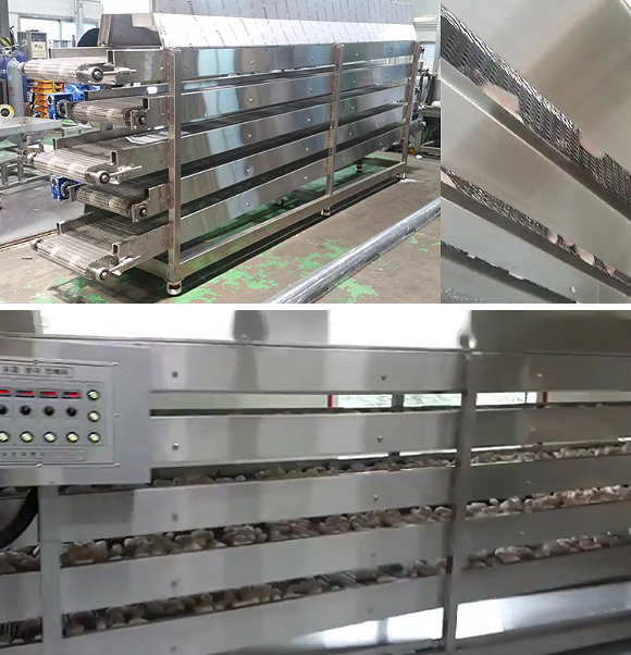 완성된 유과가 5단의 컨베이어를 거치며 냉각 및 건조되는 공정입니다.